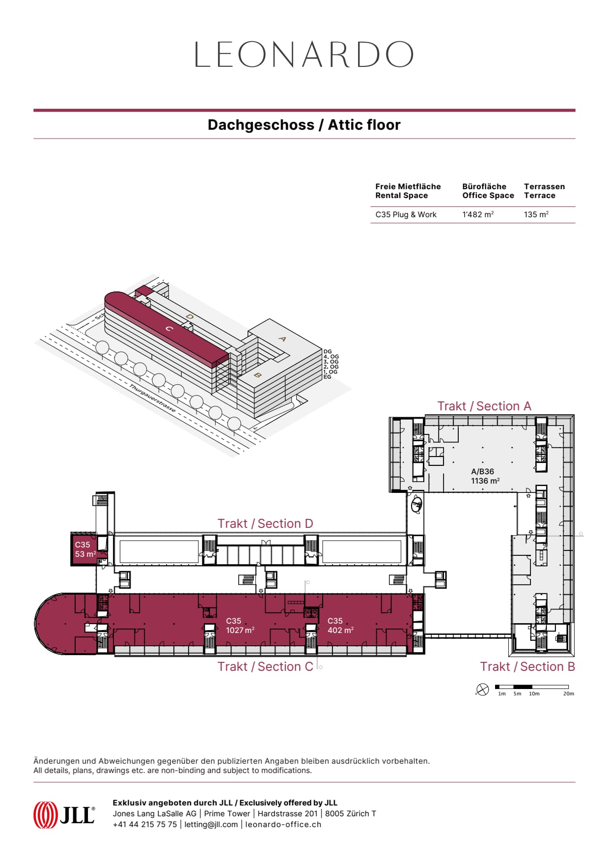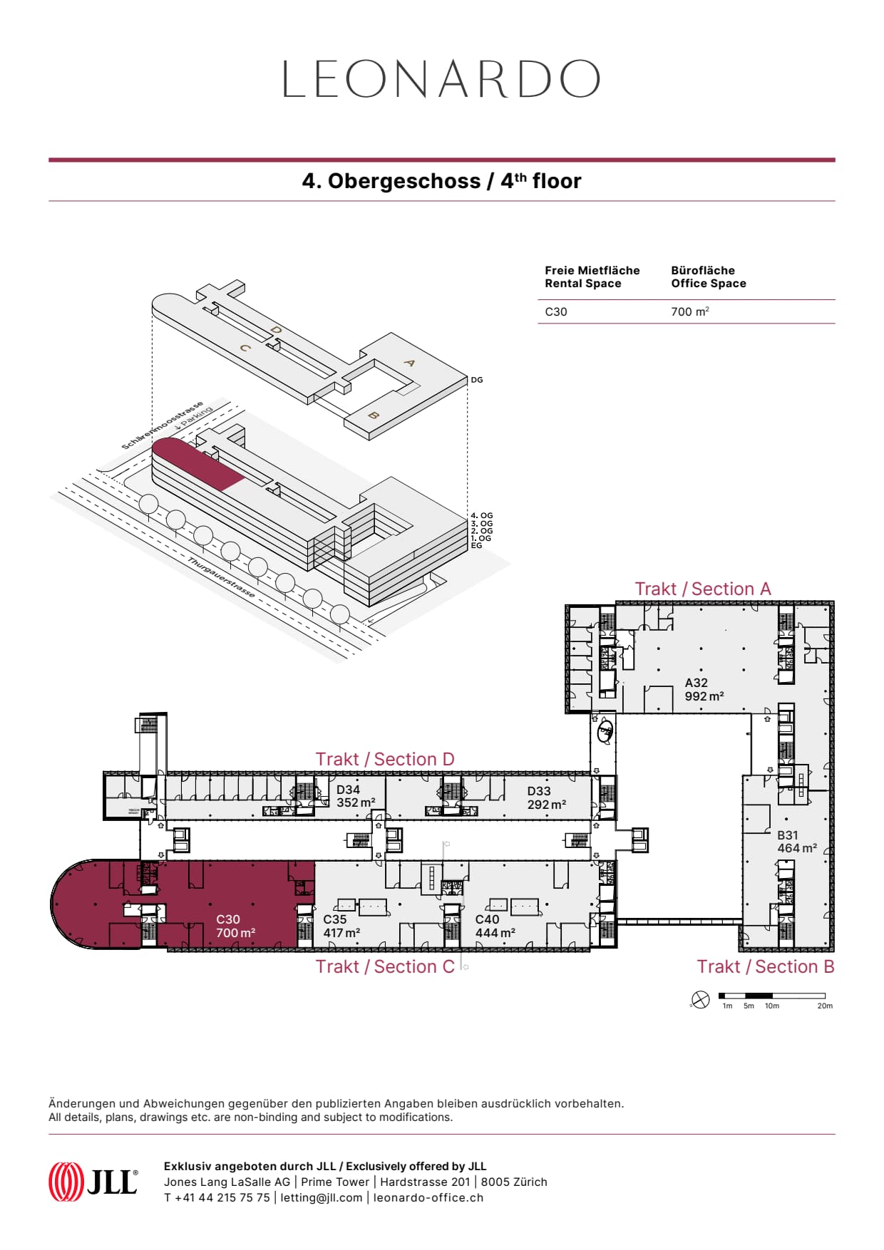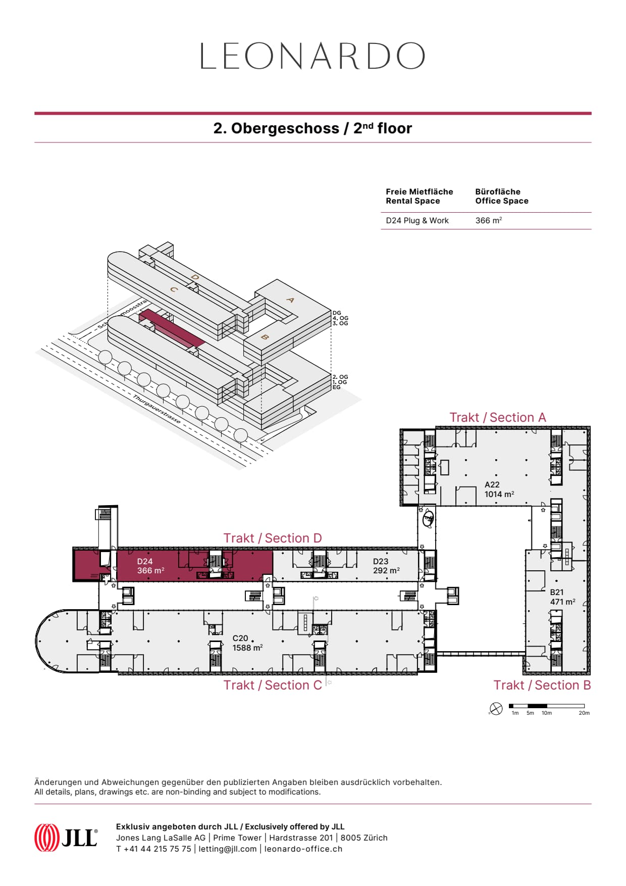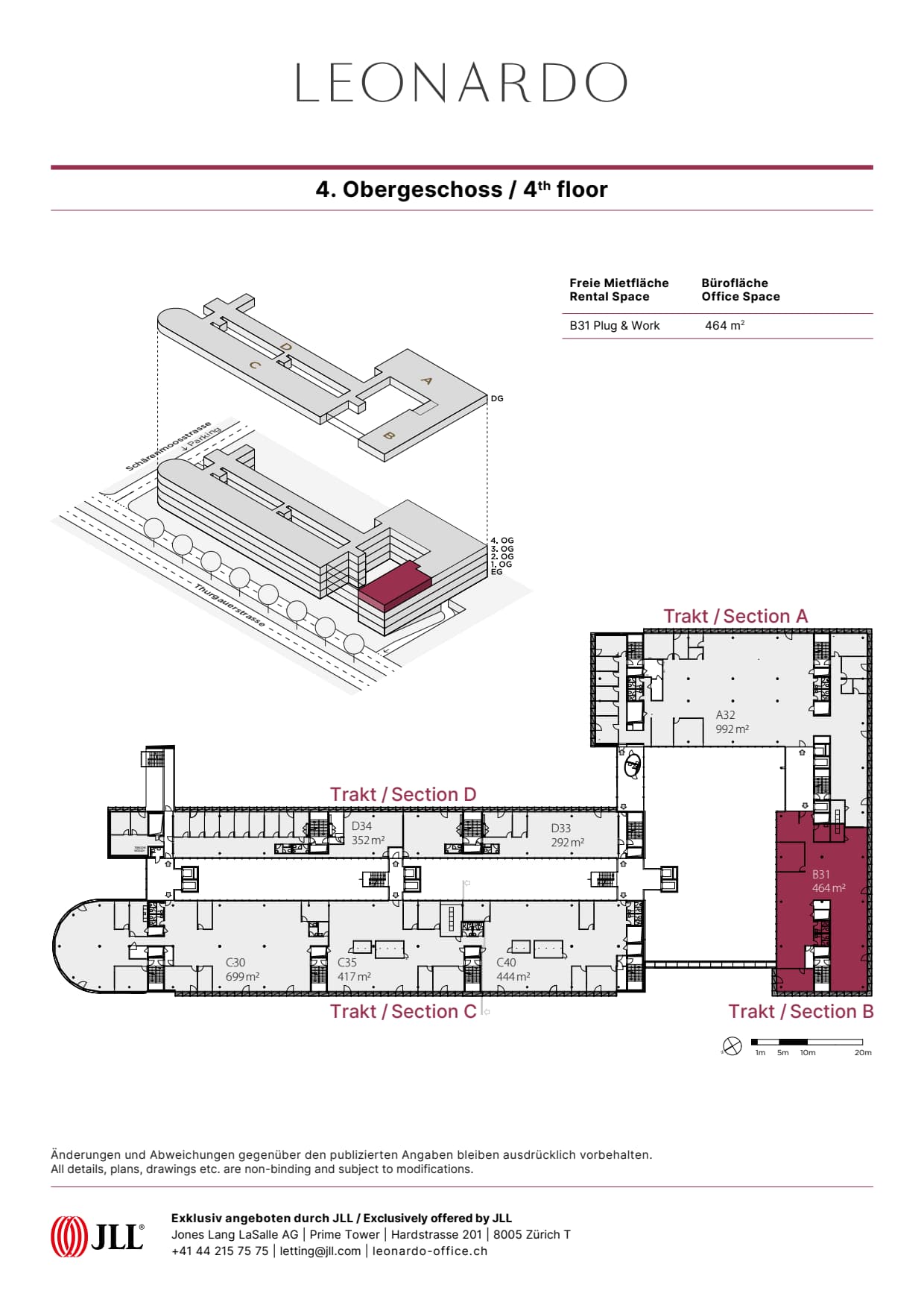 Auf 6 Geschossen, verteilt auf 4 Trakte bietet LEONARDO attraktive Lösungen für einen Büroflächenbedarf bis 2'850 m².