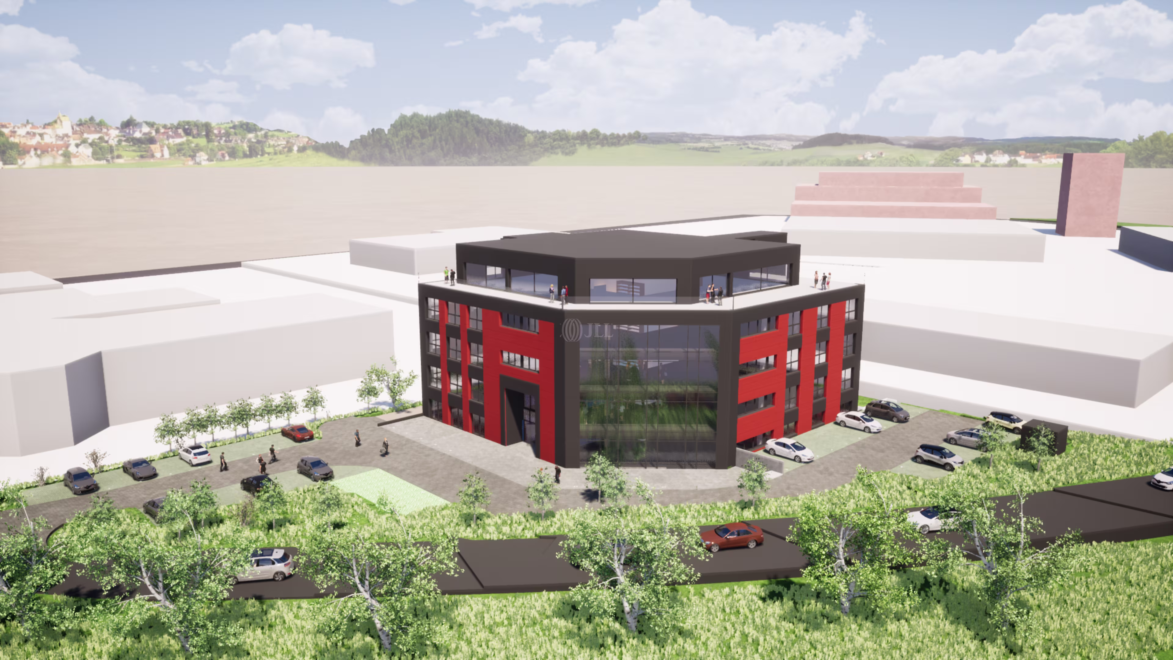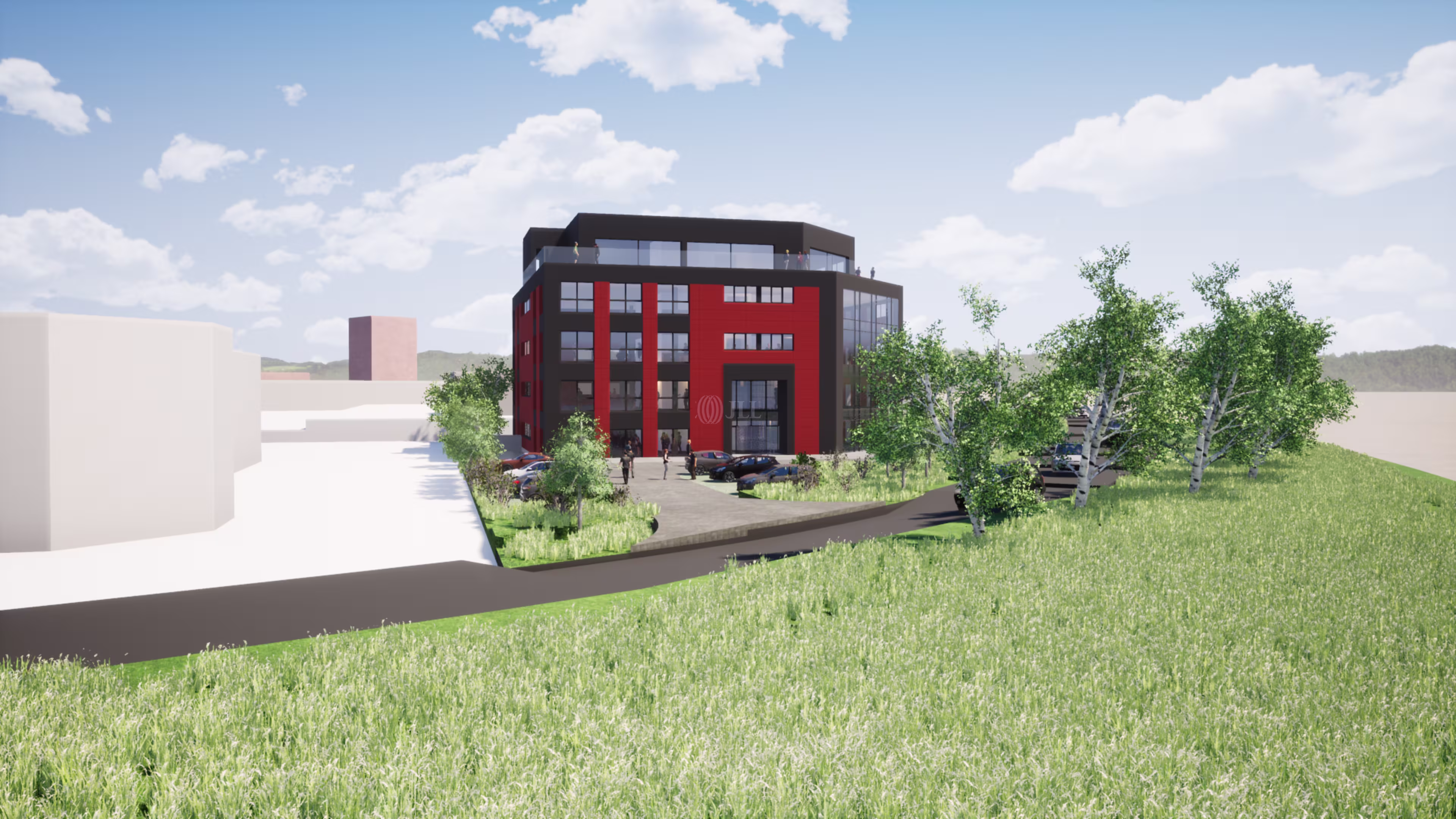 This modern building consists of a 5-storey office building with a gross floor area of up to 4,720 m2 and more than 161 parking spaces.